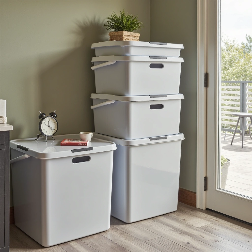 Weather-resistant stackable bins are perfect for patios, balconies, or garages. Made from durable plastic or resin, they protect contents from rain and sun damage.