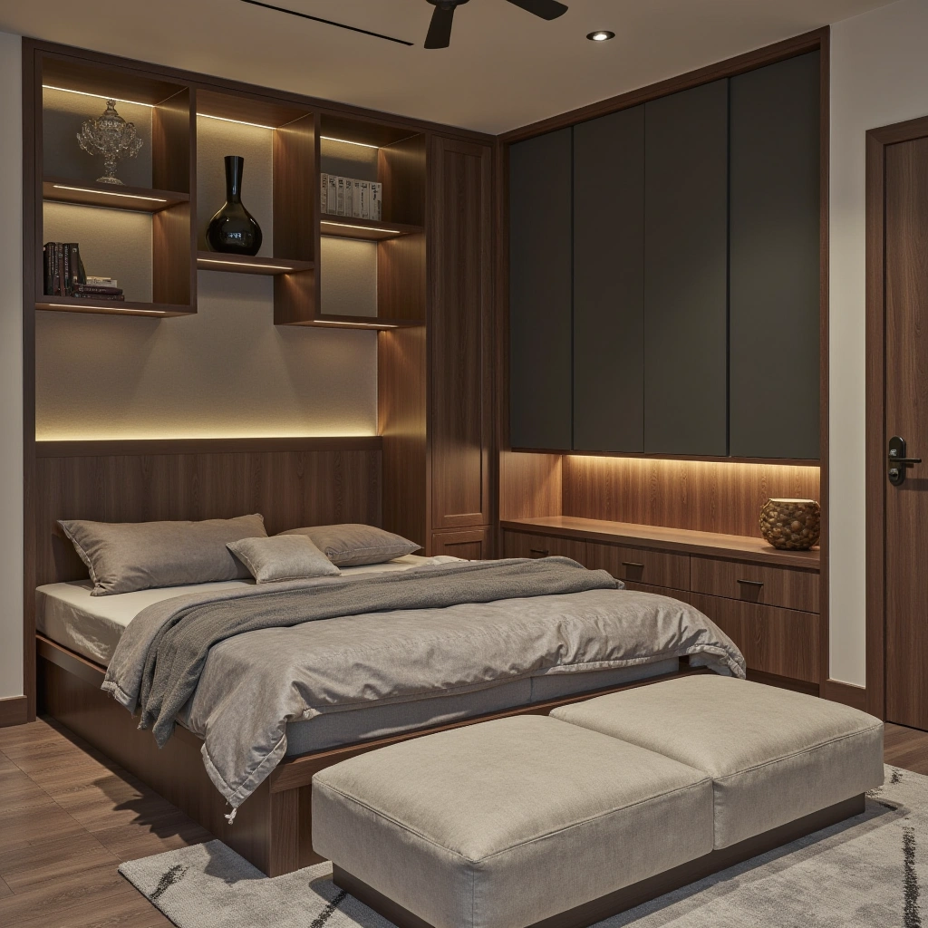 Storage Ideas: Use built-in shelves around the bed or under stairs. Opt for storage beds with drawers or lift-up mattresses.