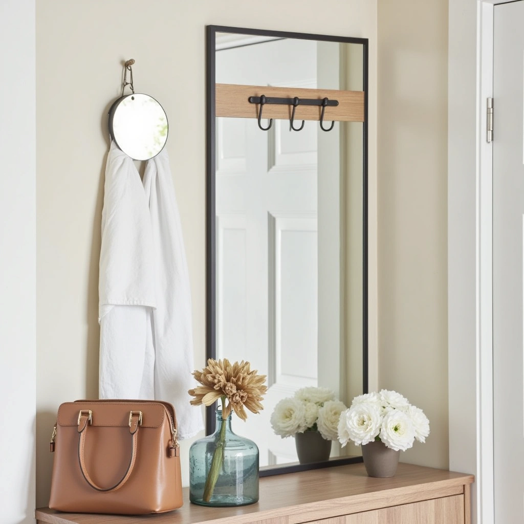 Choosing the right mirror and hooks can reflect your style while keeping things practical. Whether you want to go vintage, industrial, or minimalist, there’s an option for you.